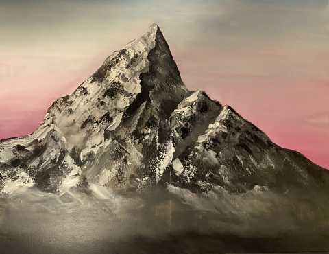 Картина акварелью «В тишине..» о красоте и величии холодных гор.