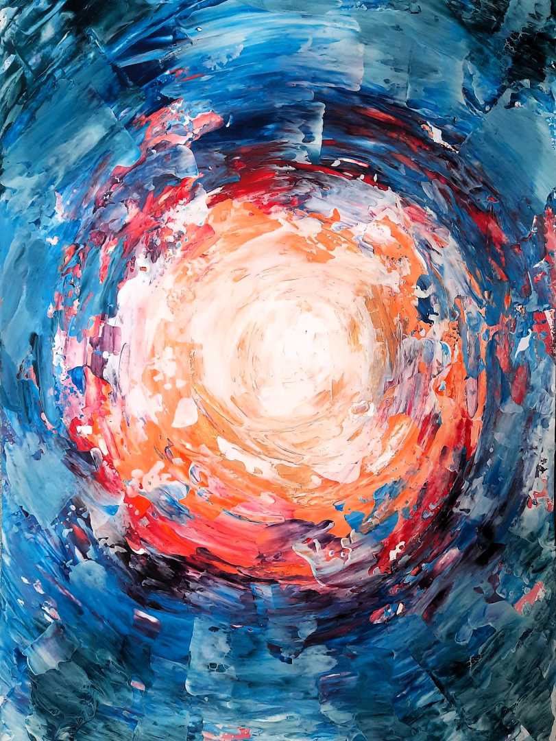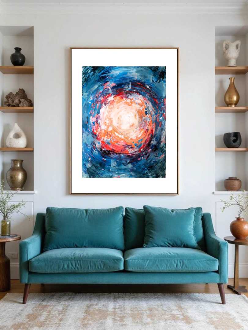 окладывает по воде прямо к зрителю. Этот светящийся трек не просто ведет взгляд вглубь картины — он символизирует надежду, направление и свет даже в самой густой синеве.