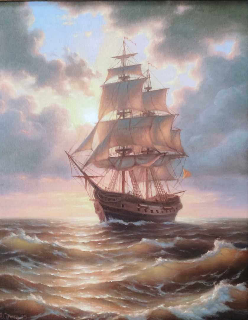 Картина выполнена в реалистичной манере, с тонкой проработкой парусов, корпуса и фактуры воды. Она станет ярким интерьерным акцентом для гостиной, кабинета, кабинета капитана, рабочего пространства или коллекции морской живописи. «Ветер странствий» вдохновляет на путь, перемены и мечту о дальних берегах.