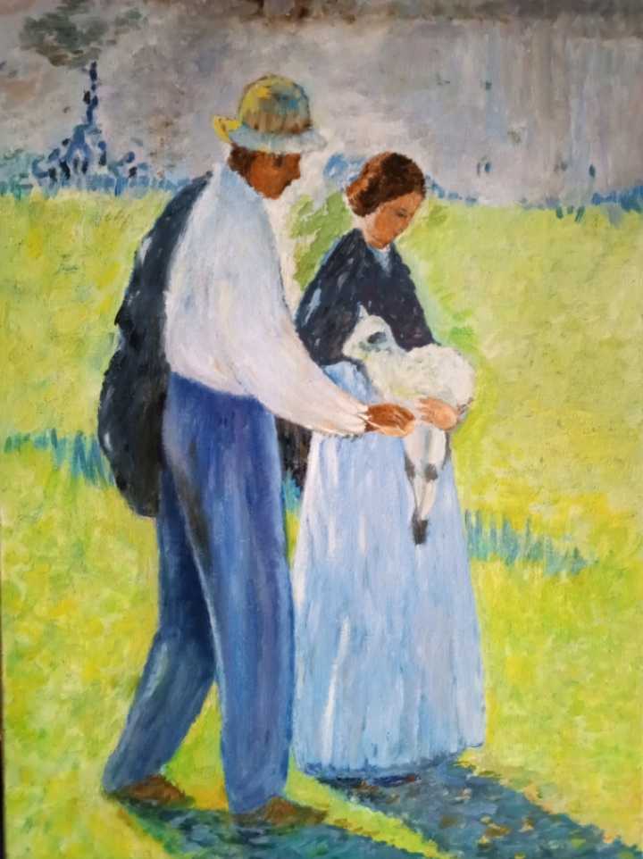 Свободная копия картины Анри Гийома Мартена Влюблённые в стиле постимпрессионизма.