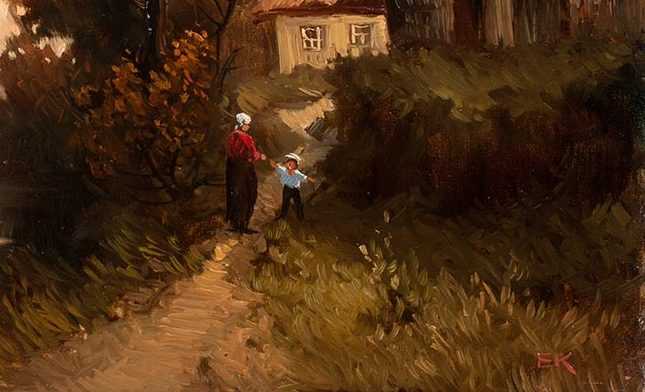 Каковкин Евгений. Внучок приехал, 2012 г., 30х40см., холст, масло. В раме. Лауреат Золотой Медали Международного Фонда "Культурное достояние".