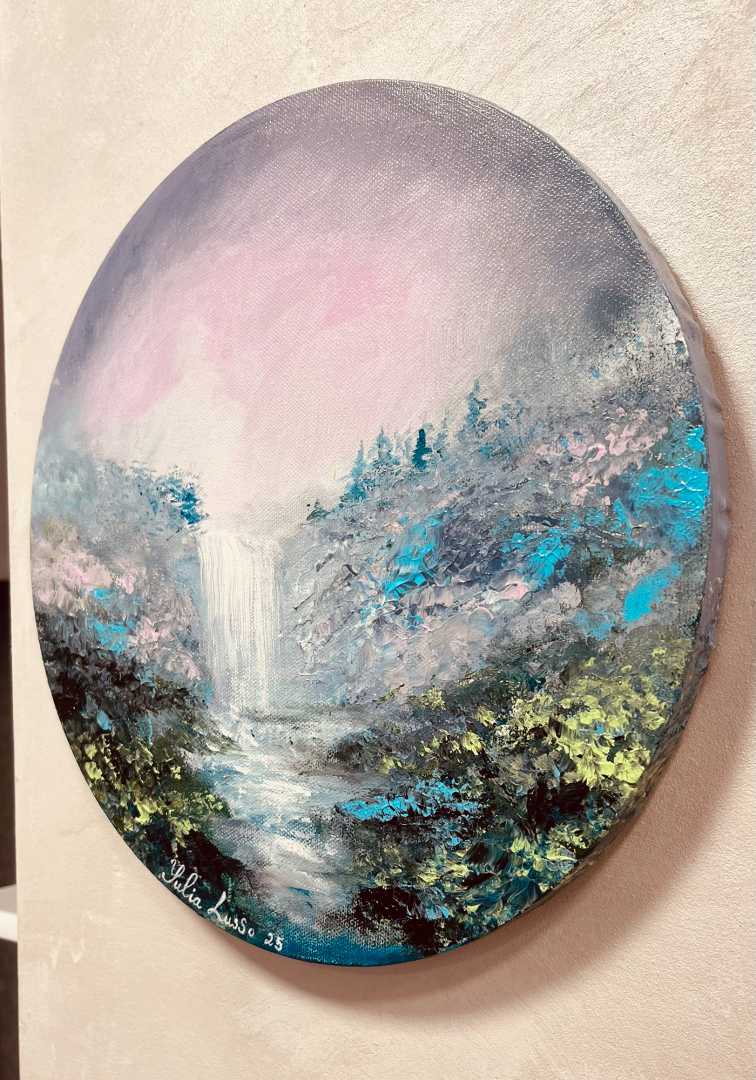 Картина выполнена в стиле современного импрессионизма с элементами абстракции. Использована мастихиновая техника — фактурные мазки создают живую поверхность, которая по-разному играет при естественном и искусственном освещении. Это уникальная авторская работа, прекрасный подарок для ценителей искусс