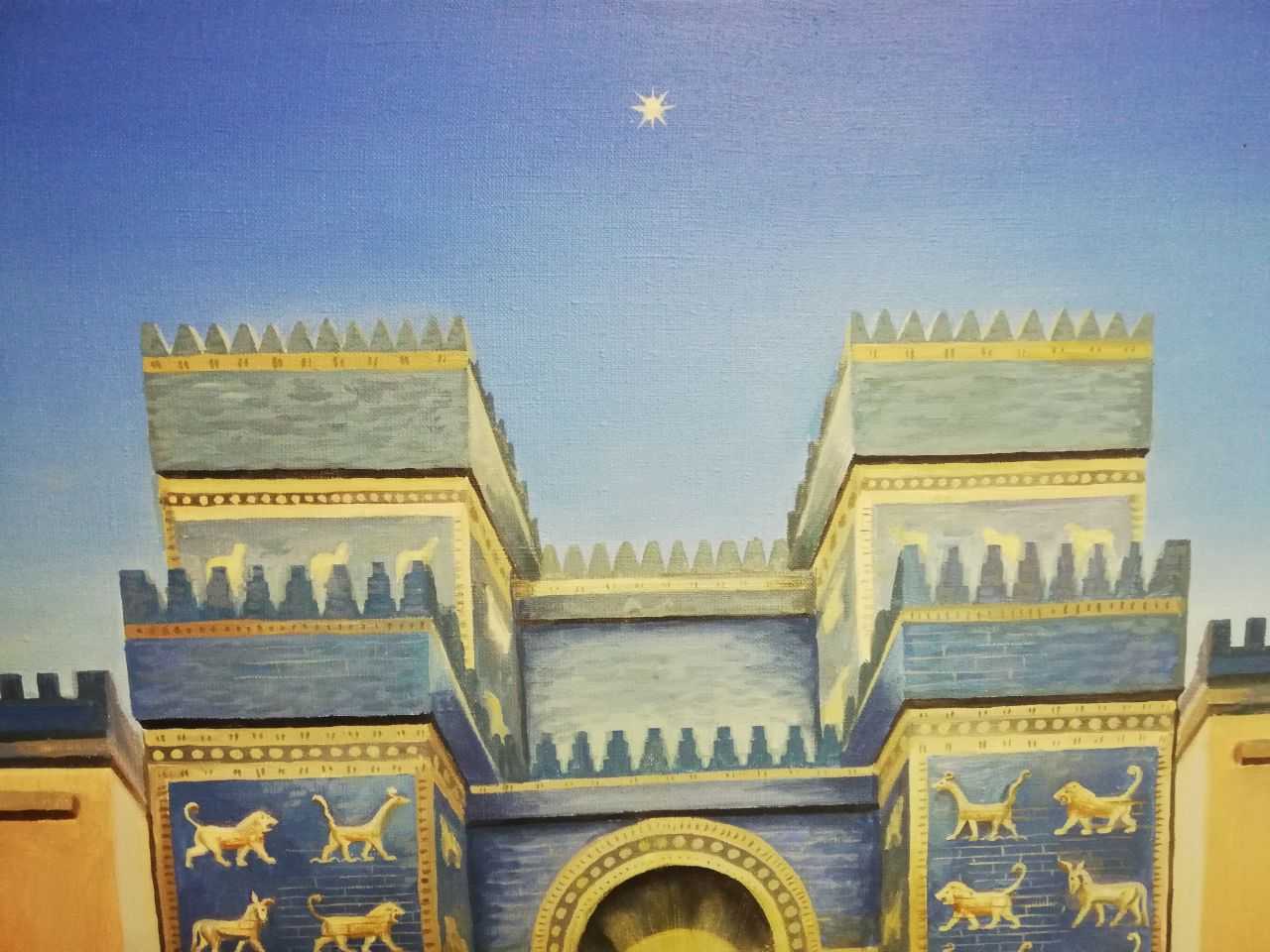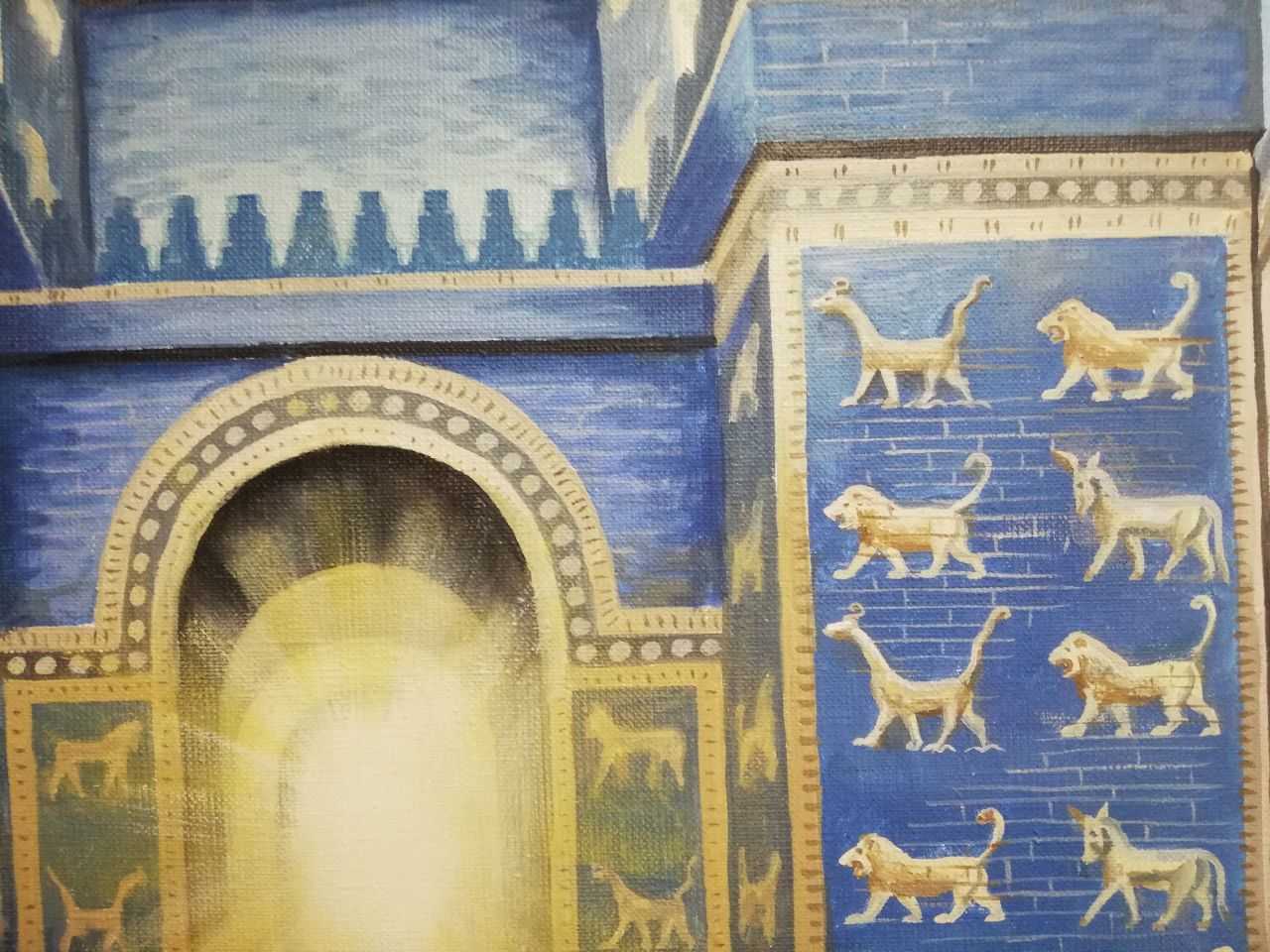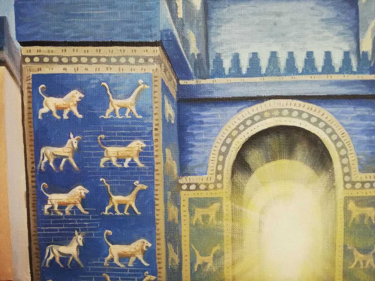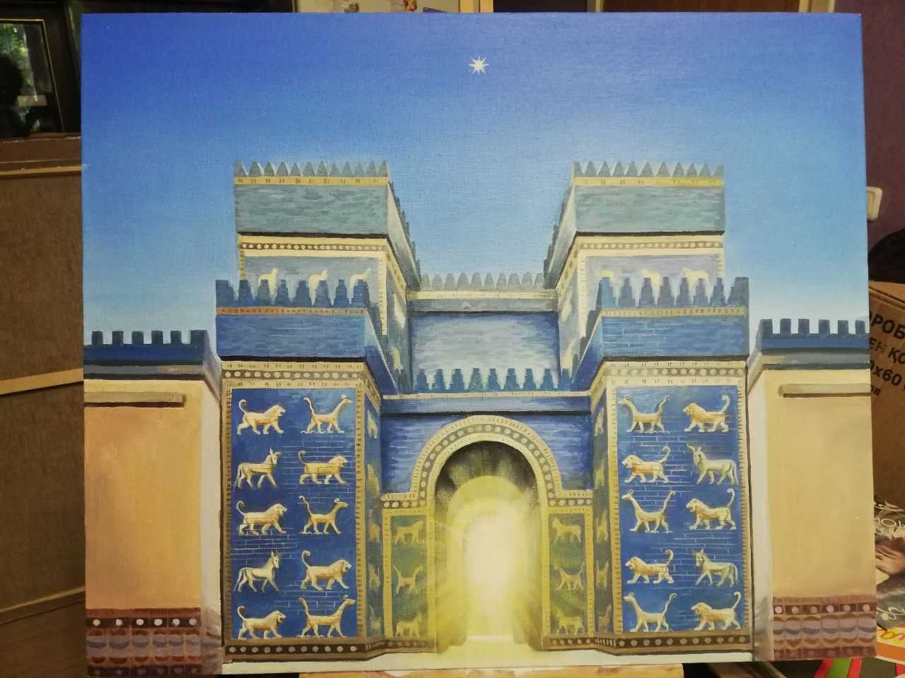 Когда я писала эту картину, перед моими глазами словно возникал древний Вавилон во всей своей мистической, величественной красоте. Я старалась передать не только архитектурную точность знаменитых ворот Иштар, но и атмосферу загадочности и внутреннег