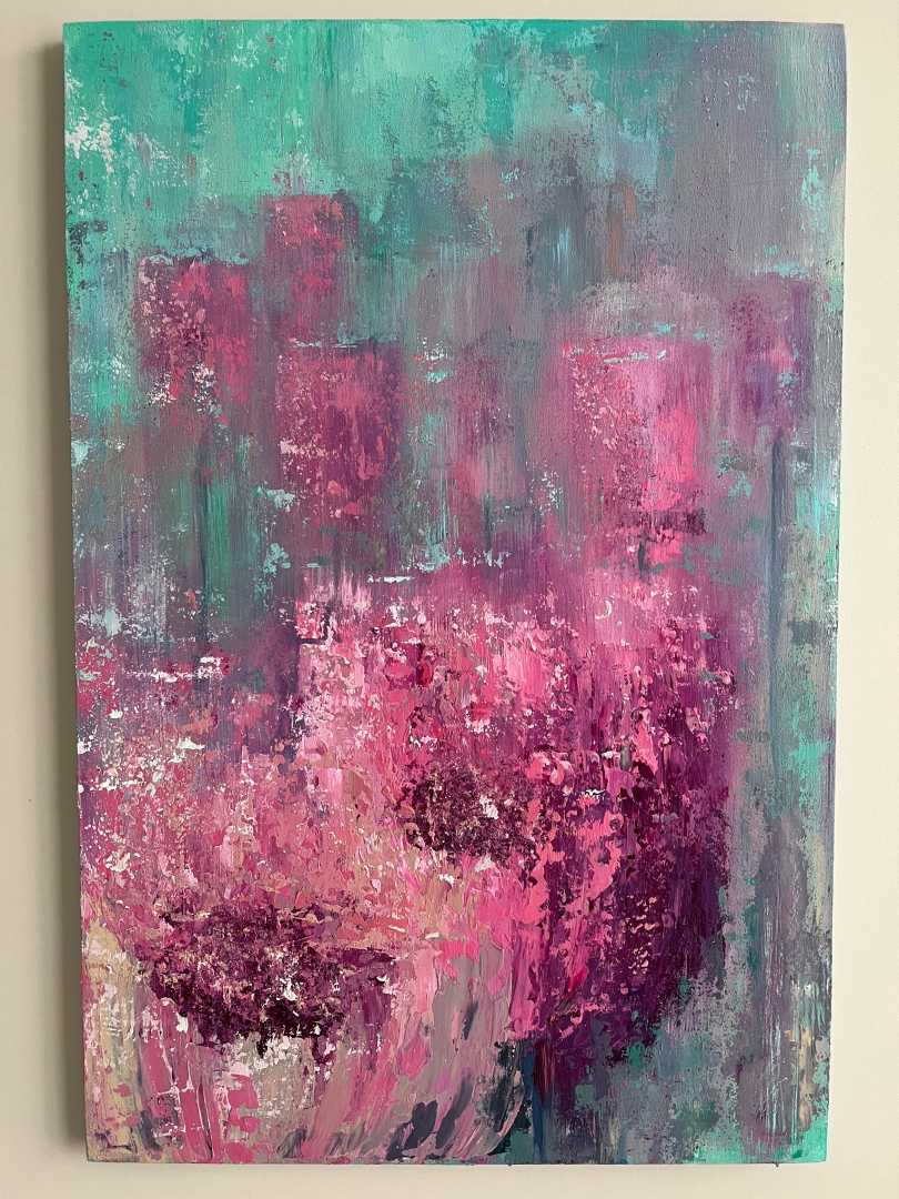 Абстрактная композиция, где стирается грань между землей и небом. Бескрайнее поле красных тюльпанов под закатом предстает единым живым организмом, который впитывает в себя последние лучи света, чтобы пылать изнутри. Густая пастозная фактура и игра с контрастом создают напряженный и завораживающий об