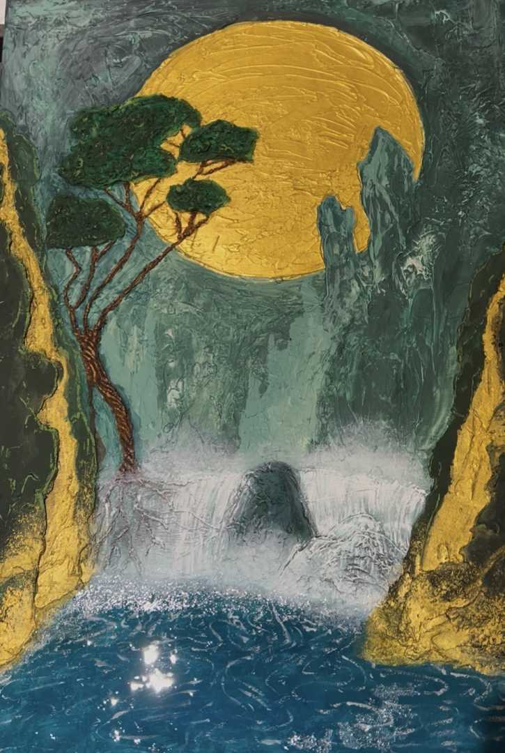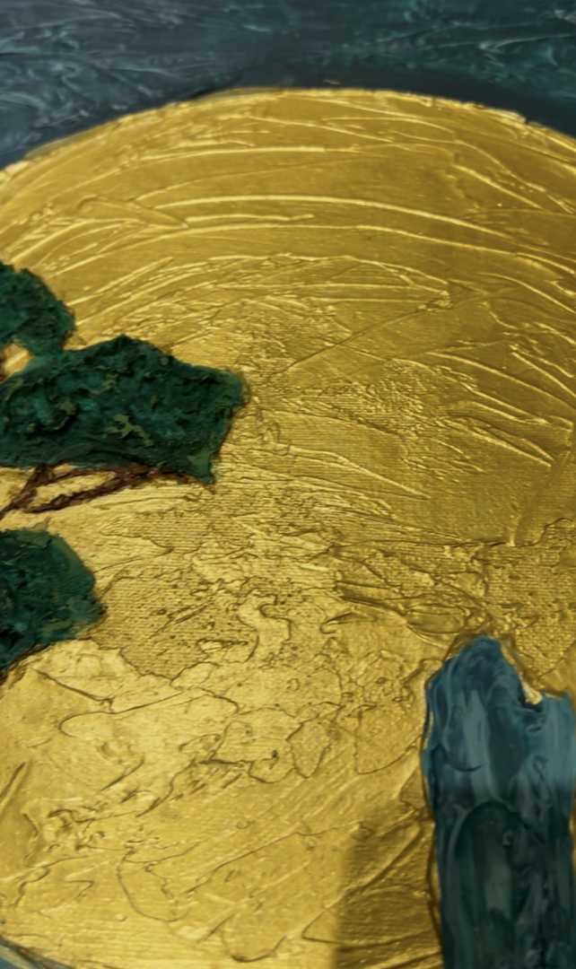 Эта картина – воплощение спокойствия и тайны. Золотая луна символизирует мудрость и интуицию, а вода – поток жизни и эмоций. Их взаимодействие создает атмосферу гармонии, приглашая к размышлениям о внутреннем мире и его связи с внешним. Это образ надежды, красоты и глубокого покоя.