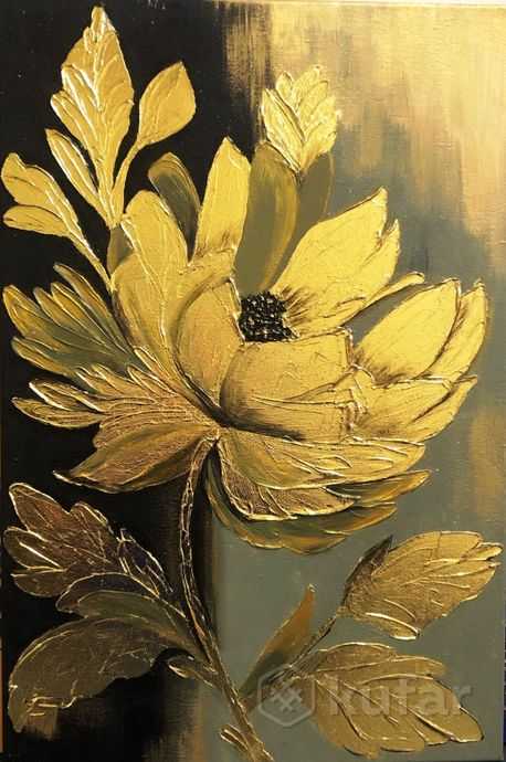 Работа выполнена текстурной пастой, акрилом и золотой поталью.