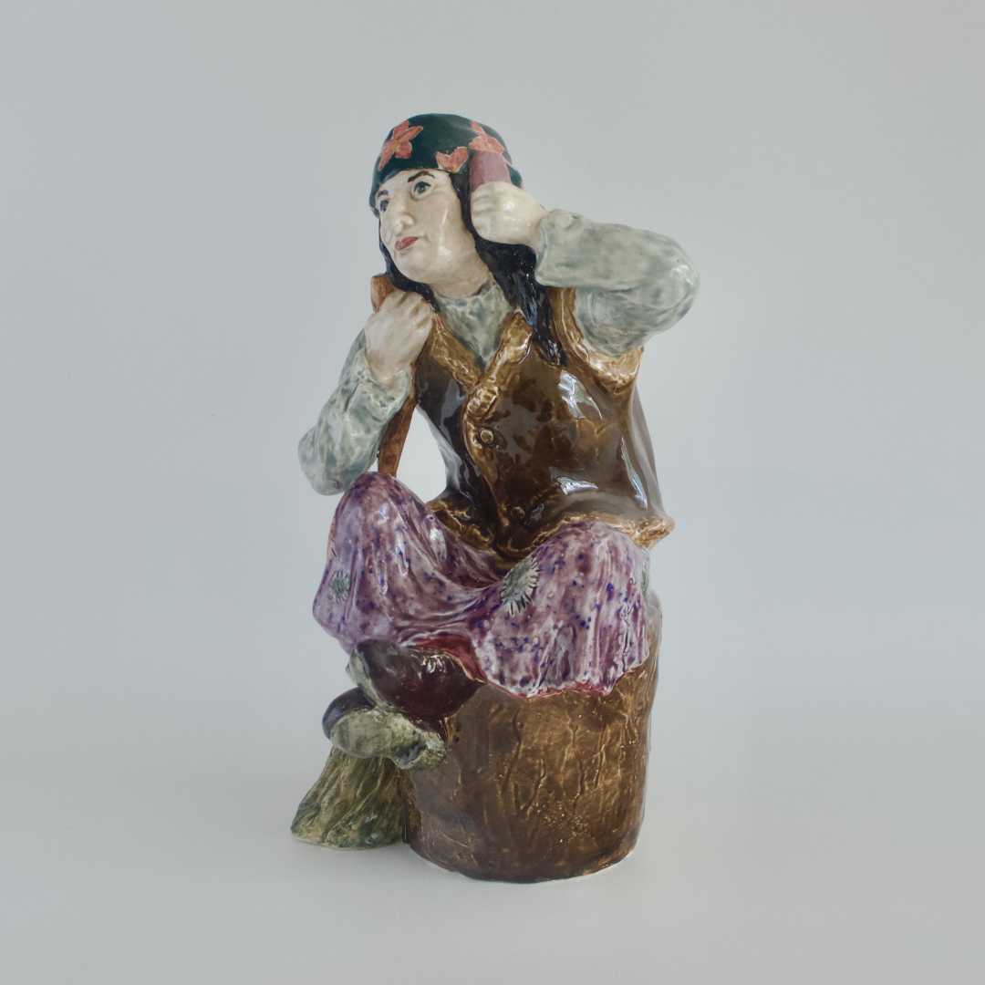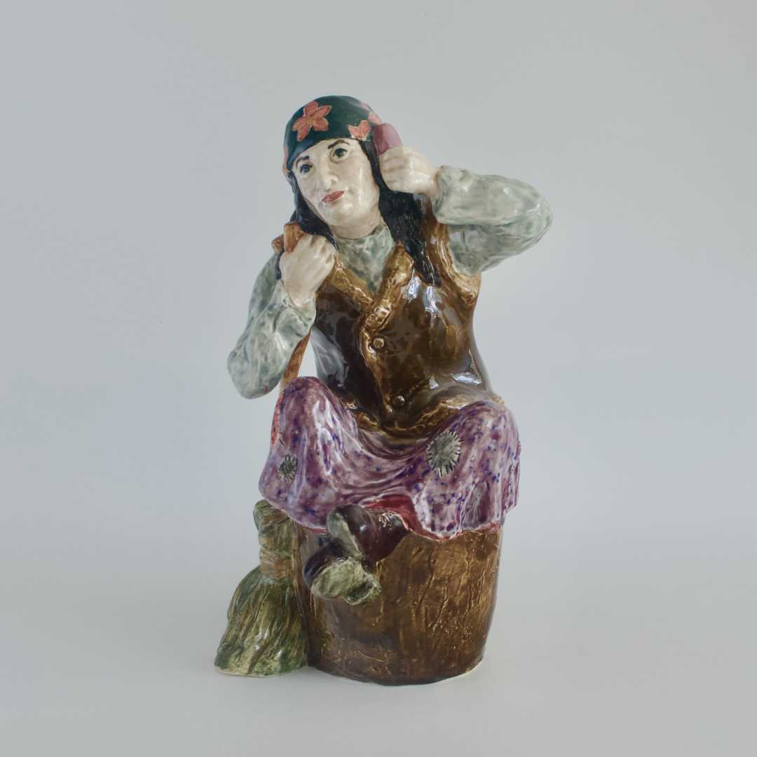 Интерьерная статуэтка ручной работы. Материал — фаянс, покрытый глазурью.